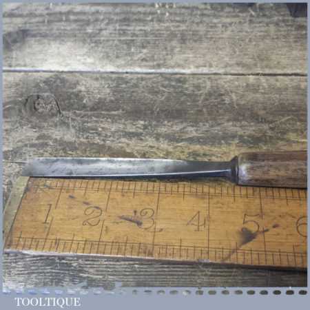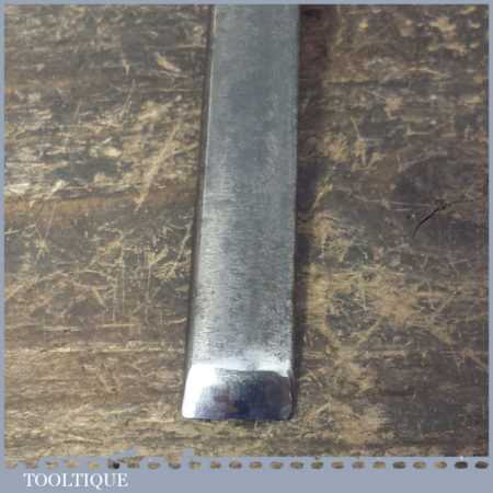 The chisel has been checked to ensure the tang is seated properly and the handle is solid and fit for use. All refurbished chisels are water cooled during the sharpening process to ensure the tempering is not affected. These old cast steel chisels are hand forged and far superior in quality because of the high carbon steel that was used which produces a keener edge, this was also generally used throughout the full length.