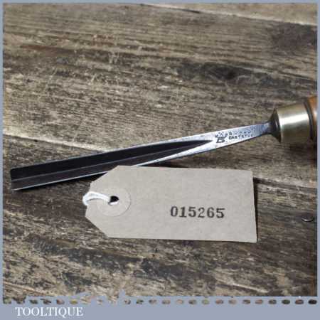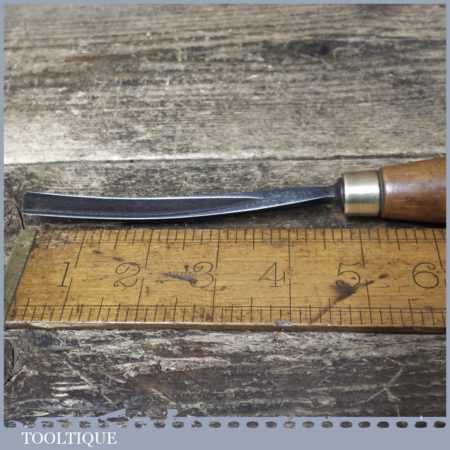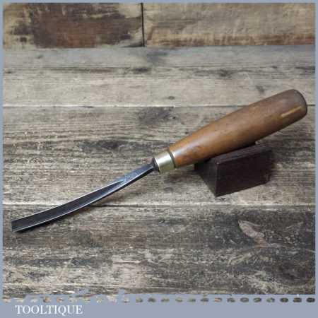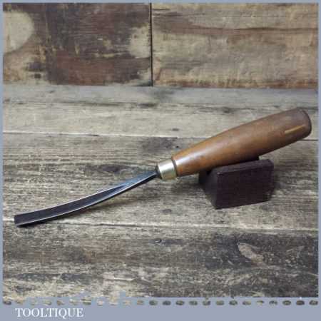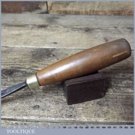 Vintage S.J. Addis (also stamped Ward & Payne) 3/8” curved wood carving “V” parting chisel with beechwood handle in good used condition, fully refurbished sharpened and honed ready for use.
