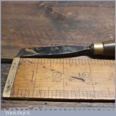 Vintage S.J. Addis (also stamped Ward & Payne) 1/2″ skewed carving chisel with beechwood handle, in good used condition, fully refurbished, sharpened and honed ready for use.