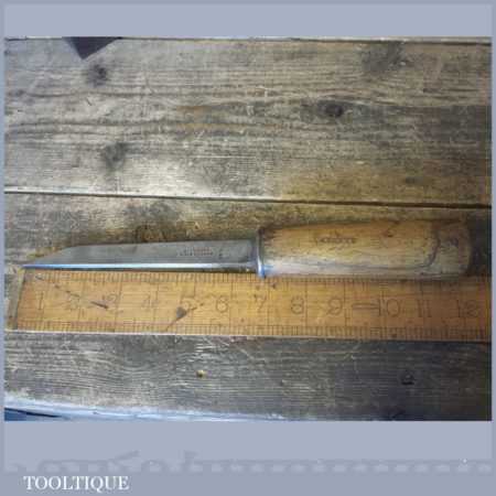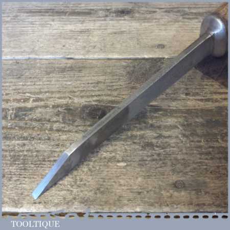 The chisel has been checked to ensure the tang is seated properly and the handle is solid and fit for use. All refurbished chisels are water cooled during the sharpening process to ensure the tempering is not affected. These old cast steel chisels are hand forged and far superior in quality because of the high carbon steel that was used which produces a keener edge, this was also generally used throughout the full length.