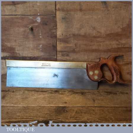 Vintage S. Tyzack & Son 14” brass back tenon saw with 10 tpi, fully refurbished and sharpened cross cut ready for use. Note: patch of pitting to one area of saw plate but nothing to affect the use or sharpening.
