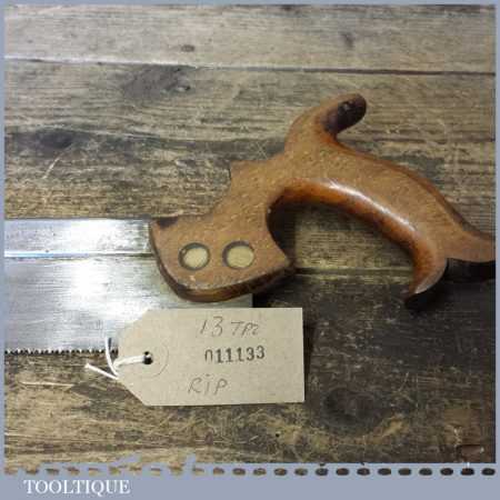 Vintage S. Tyzack & Son 9” steel back 13 tpi dovetail saw with a pistol grip beechwood handle, fully refurbished and sharpened as a rip ready for use.