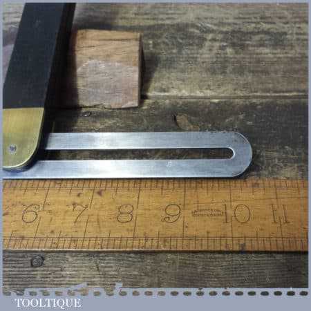 Vintage S. Tyzack & Son carpenters ebony and brass sliding bevel with 10 ½”, blade in good used condition.