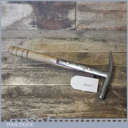 Vintage saddler’s leatherworking strapped claw hammer with wooden handle, in good used condition.