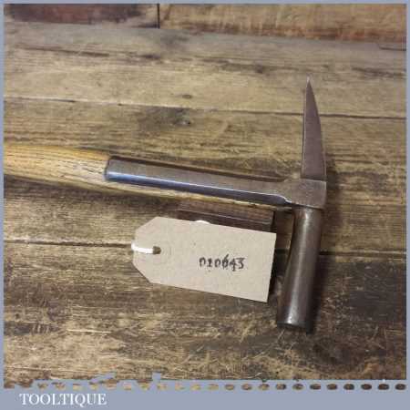 Vintage saddlers leatherworking strapped tack hammer with bulbous ash handle in good used condition.