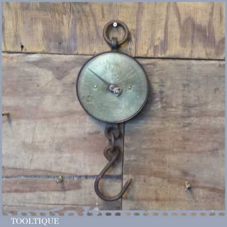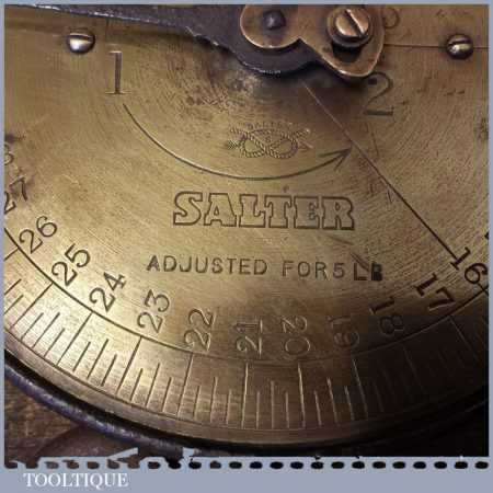 Vintage Salter brass faced spring balance hanging scales in good used condition.