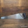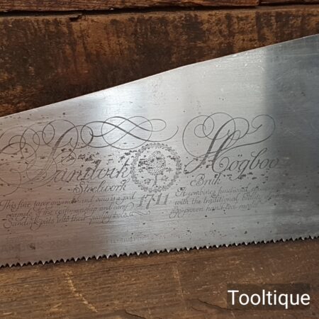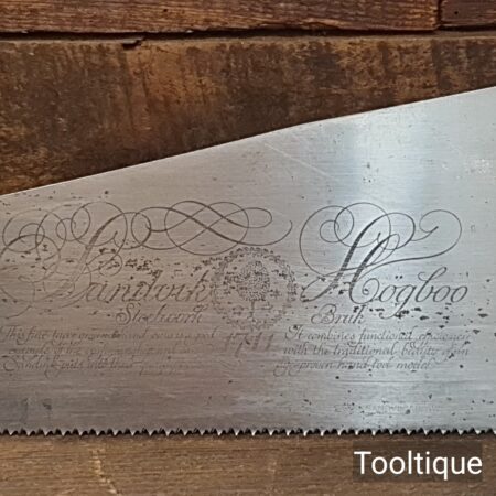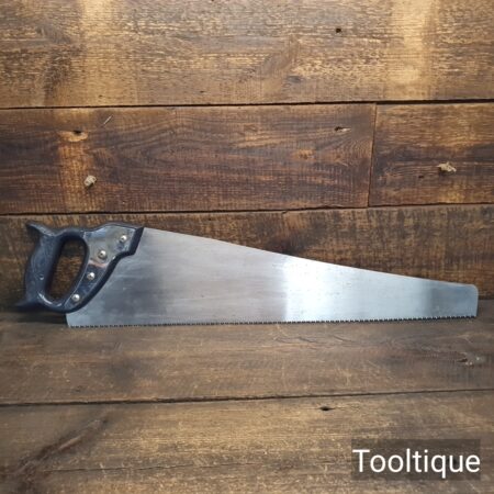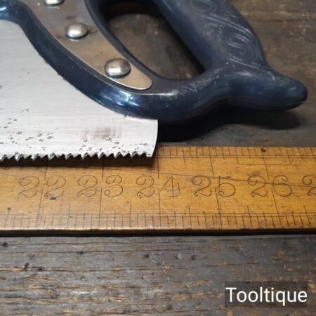 Vintage Sandvik No: 288 24” Blue Handled Cross Cut hand saw, Sharpened ready for use and in good used condition. Note: Sharpened using all three disciplines of rake. slope and fleam for a cleaner more efficient cut. The saw has been thoroughly cleaned, jointed, resharpened and set by hand so that all the hard work of getting an old vintage saw right has been undertaken. We do this so that the next sharpening is easier and no more than a quick freshen up would be required. Those who are familiar with sharpening will know this is no small job and requires skill, effort and time to achieve good results.