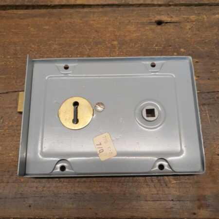 This is a Vintage Satin nickel finish rim lock that goes with rim knob furniture. The lock fits to the face of the door, as opposed to mortice locks which fits into the door edge. This lock is operated from either side by a knob.