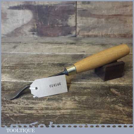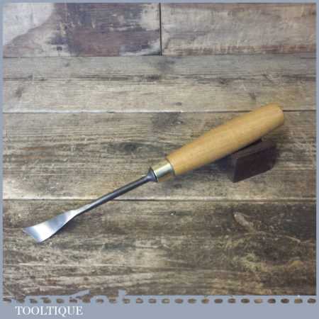 Vintage Sculpture Associates of Germany 3/4” skewed spoon bit carving chisel numbered 22 with beechwood handle, in good used condition, fully refurbished, sharpened and honed ready for use.