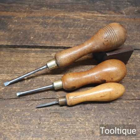 Vintage selection of 3 No: different awls in good ready-to-use condition.