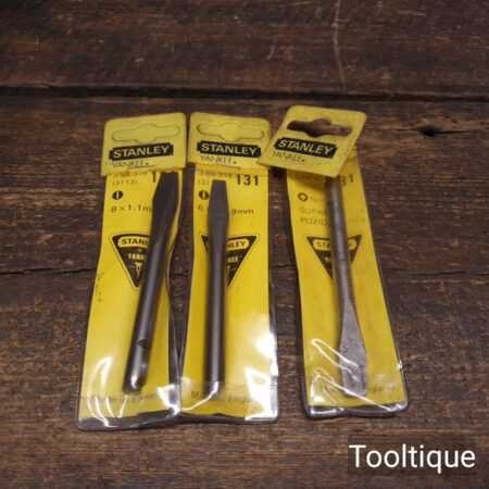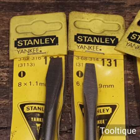 Vintage selection of 4 No: vintage Stanley Yankee No: 131 flat head screwdriver ends, different sizes and in good used condition.