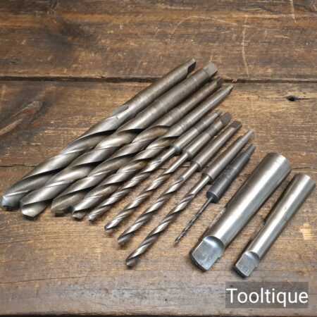 Vintage Selection of 9 No: Morse tapered imperial drill bits with expansive sleeves in good used condition.
