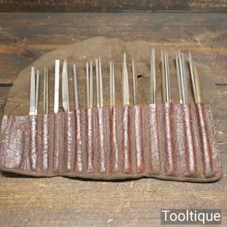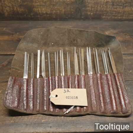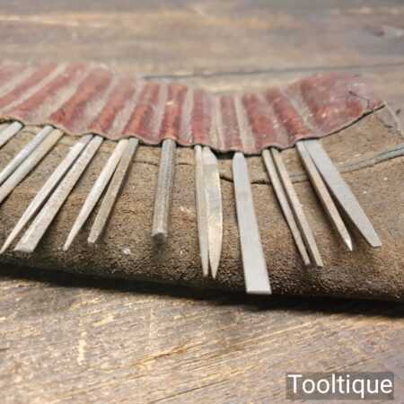Vintage Selection of 32 No: needle files in a nice leather roll, in good used condition.