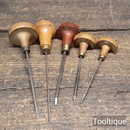 Vintage Selection of 5 No: Gravers tools sharpened ready for use and in good used condition.