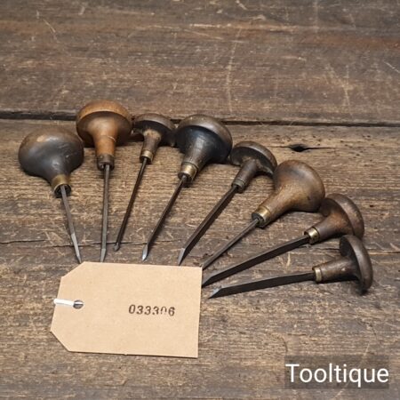 Vintage Selection of 8 No: Gravers tools sharpened ready for use and in good used condition.