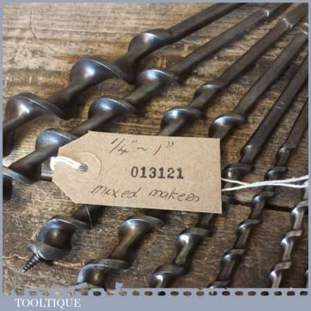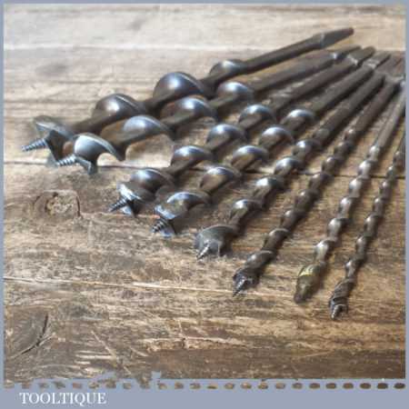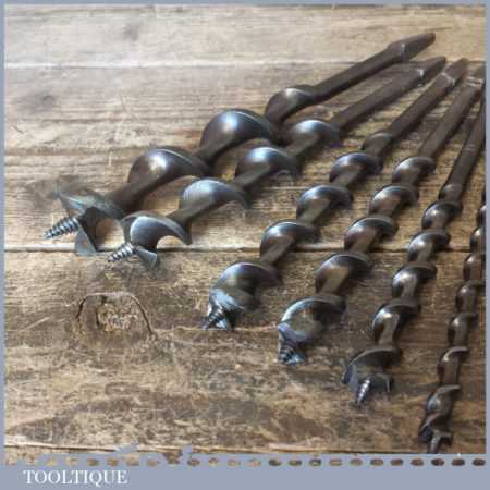 Vintage set of 8 No: double spur screw auger bits by various makers ranging between 1/4” – 1”, in good used condition.