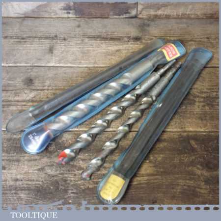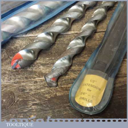Vintage set of 3 No: masonry bits (19mm – 22mm) with 2 No: extensions, in good used condition.