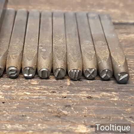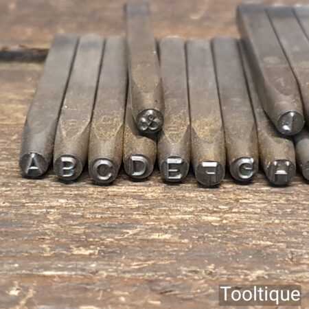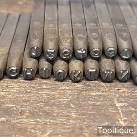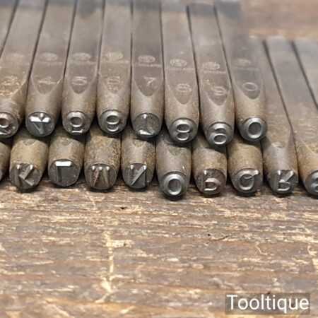 Vintage Set of 37 cast steel TC England number and letter punchers in good used condition.