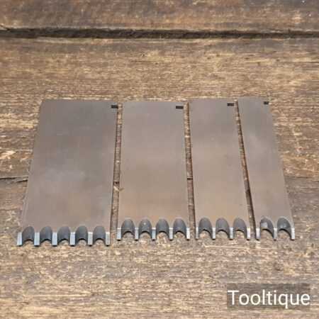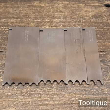 Vintage Set of 4 Record Reeding cutters (1⅝”, 1⁵⁄₁₆”, 1″, ¹¹⁄₁₆”) for 405 combination plane in good used condition. Unused condition