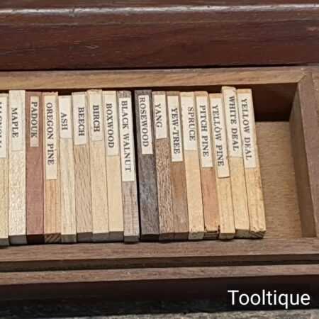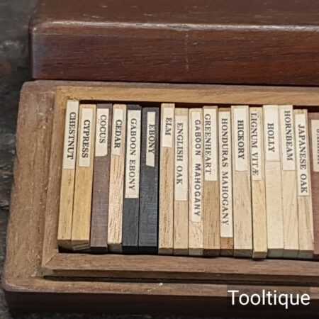 Vintage set of 41 No: Wood specimen samples in a mahogany box in good used condition.