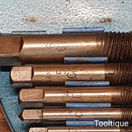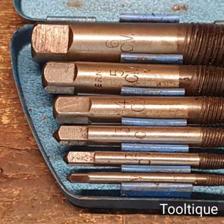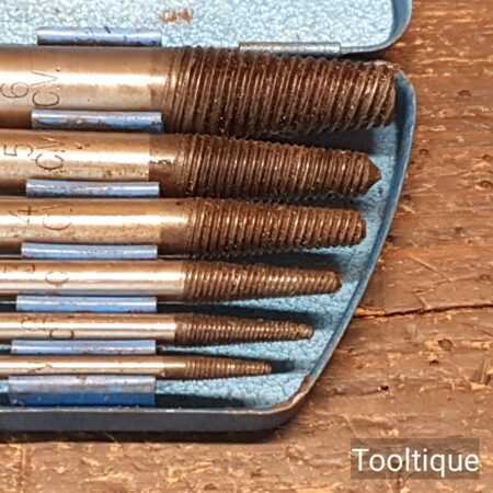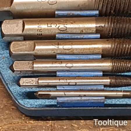 Vintage Set of 5 German cast steel engineer’s screw removal taps in good used condition.