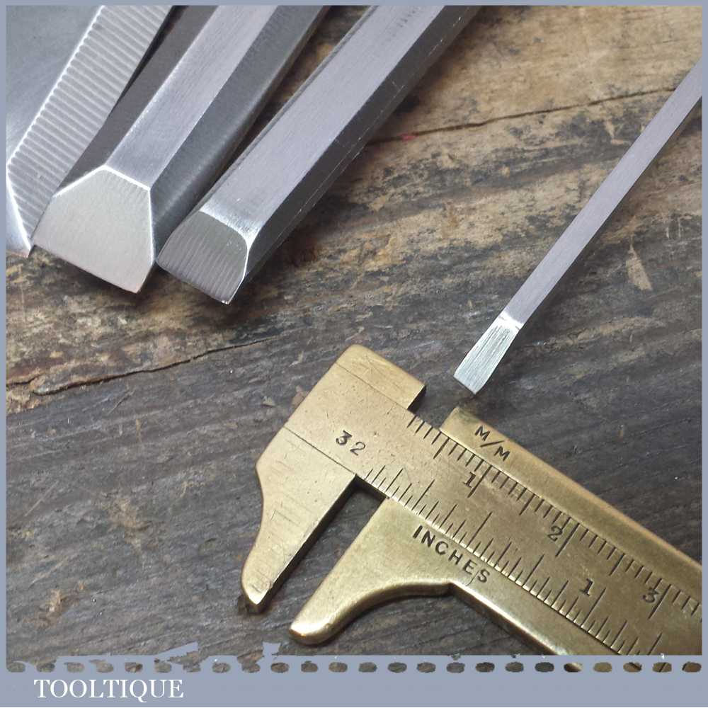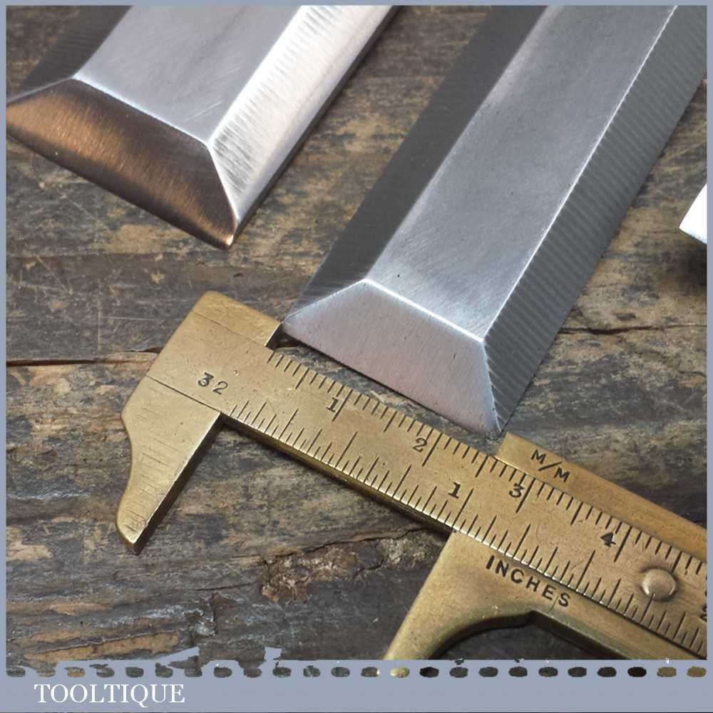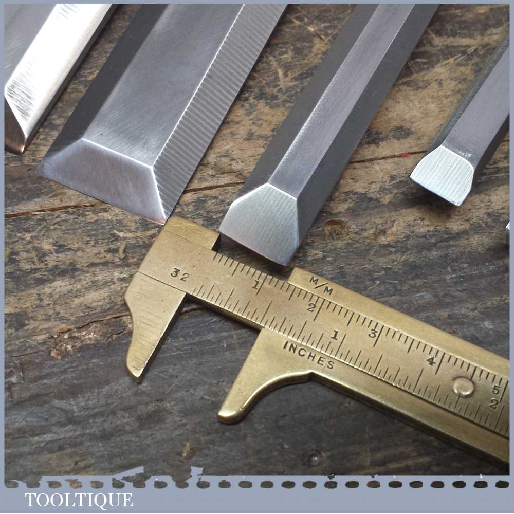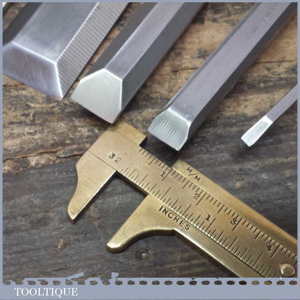 Vintage set Of 5 Marples Bevel Edge Carving Chisels with Shatterproof Handles. Sizes ranging from ¼ to 1 ¼” all chisels are in a good used condition sharpened and honed ready to use. These are a decent jobbing chisel suitable for general site work and are usually a general carpenter’s choice. However those who are in need of higher quality steel it’s always better to buy older chisels as they are constructed to a higher standard.