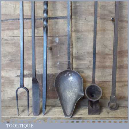 Vintage set of 6 No: blacksmith hand forged lead working tools, in good used condition