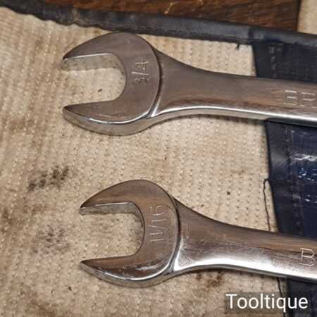 Vintage Set of 8 Britool CES750 imperial spanners inside original roll in good used condition.