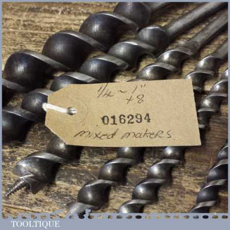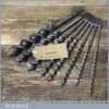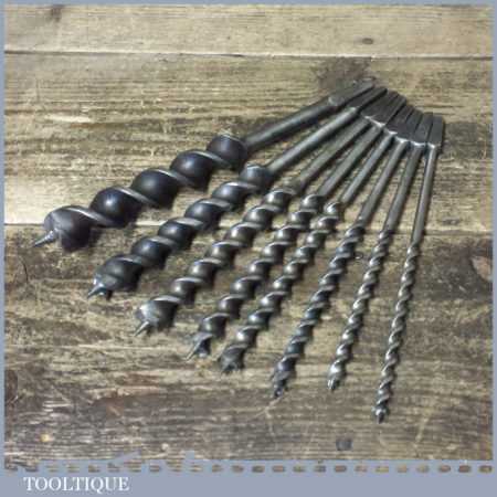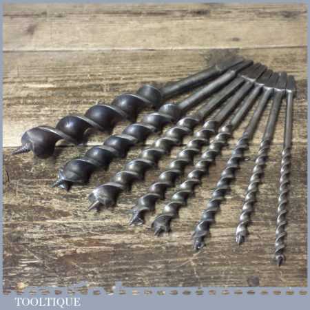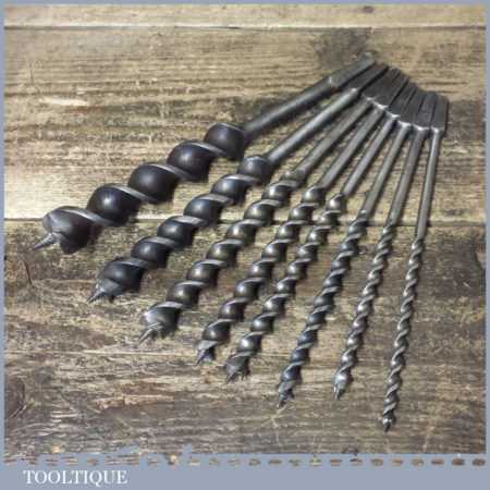 Vintage set of 8 No: double spur screw auger bits Sharpened ready for use by various makers ranging between 1/4” – 1”, in good used condition.