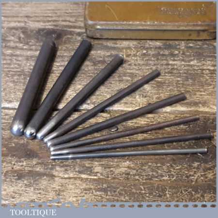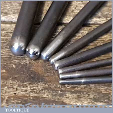 Vintage set of 8 No: silversmithing rounded repousing punches in good used condition.
