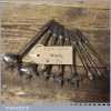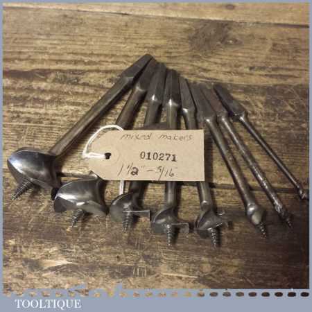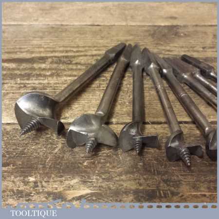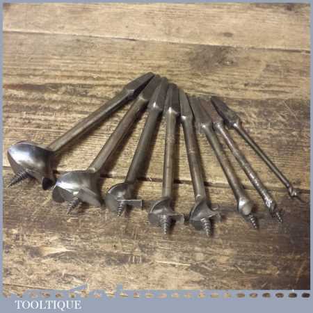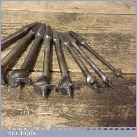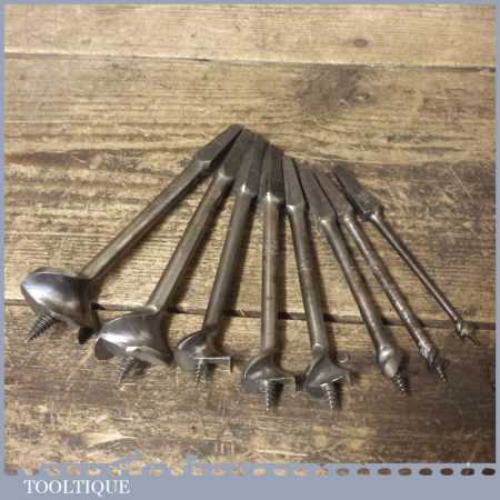 Vintage set of 8 No: single spur screw centre bits by various makers ranging between 5/16” – 1 ½” in good used condition.