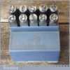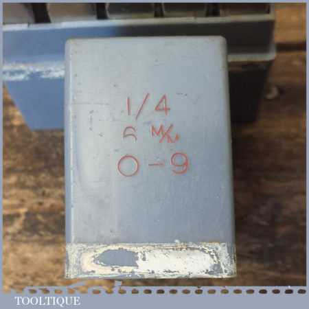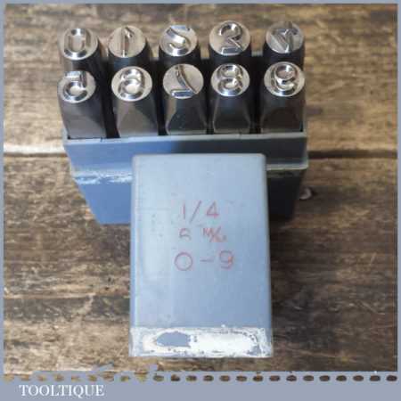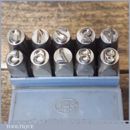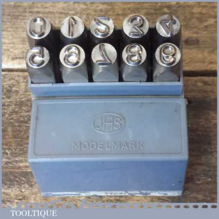 Vintage set of JHS Devon Modelmark 1/4” or 6mm 0-9 number stamps in original box and in good used condition.