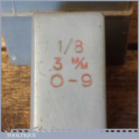 Vintage set of JHS Devon Modelmark 1/8” or 3mm number stamps in original box and in good used condition