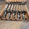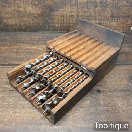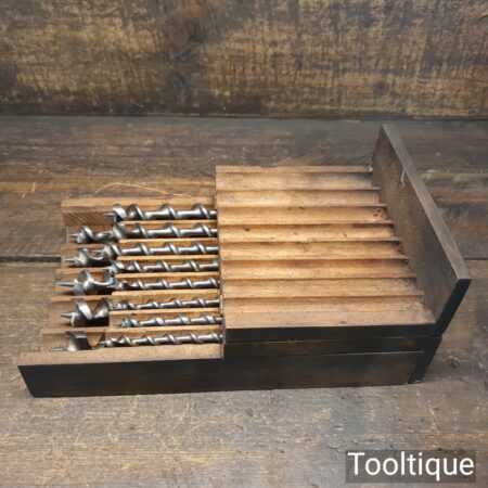 Vintage Set of 13 No: double spur twist bits in a nice box 5/16” – 1” in good used condition. These have been sharpened ready for use and are by mixed makers.