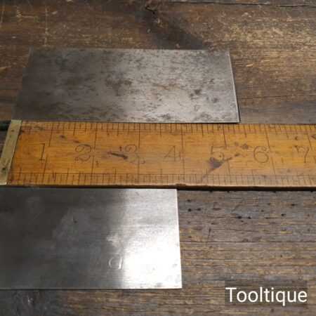 Vintage Set of 2 No: cabinet scrapers in good used condition with crisp square edges ready for use. Note: One scraper is stamped Marples & Sons and has an edge sharpened at an angle with rolled burr.