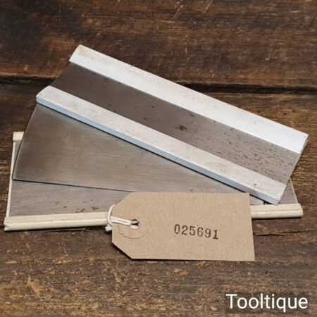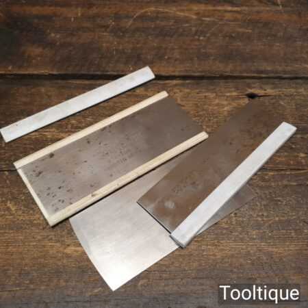 Vintage set of 3 No: cabinet scraper blades in good used condition. The edges are crisp and these are ready for use.