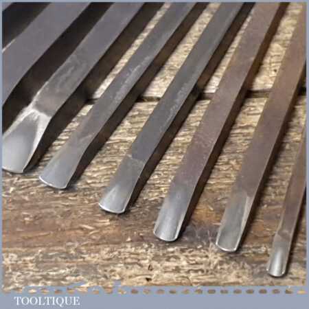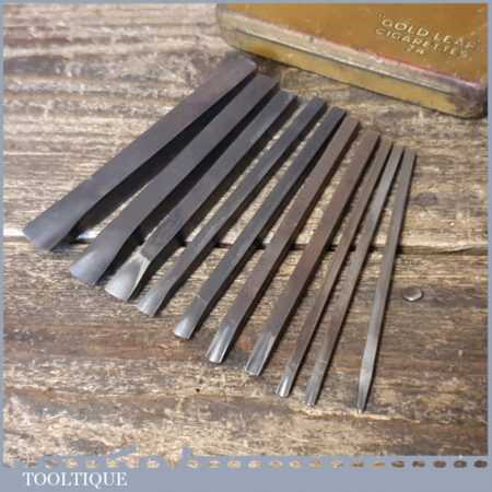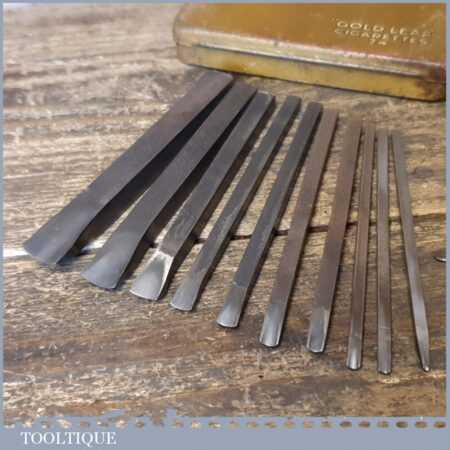 Vintage set of 10 No: silversmiths gouge shape repousing punches in good used condition.