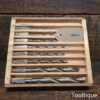 Vintage set of 8 drill bits for a brace sharpened in good condition and ready for use.