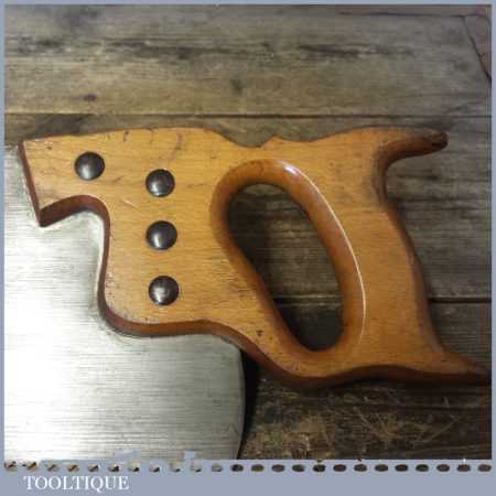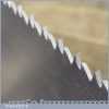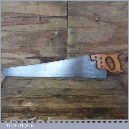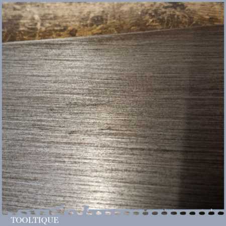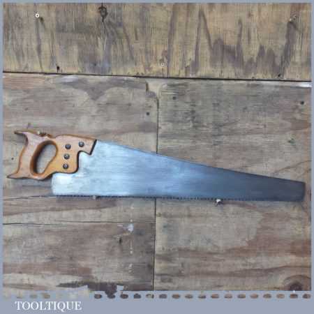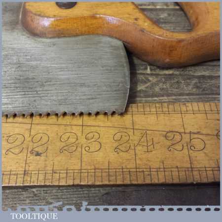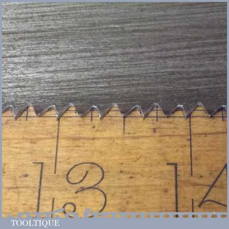 The saw has been thoroughly cleaned, jointed, resharpened and set by hand so that all the hard work of getting an old vintage saw right has been undertaken. We do this so that the next sharpening is easier and no more than a quick freshen up would be required. Those who are familiar with sharpening will know this is no small job and requires skill, effort and time to achieve good results.