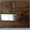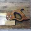The saw has been thoroughly cleaned including under the handle, jointed, resharpened and set by hand so that all the hard work of getting an old vintage saw right has been undertaken. We do this so that the next sharpening is easier and no more than a quick freshen up would be required. Those who are familiar with sharpening will know this is no small job and requires skill, effort and time to achieve good results.