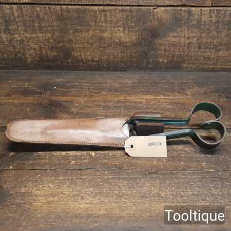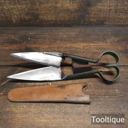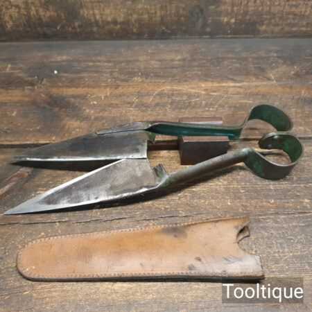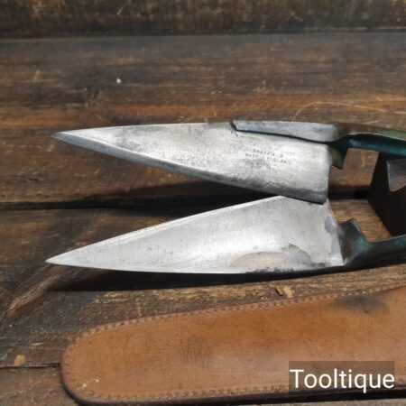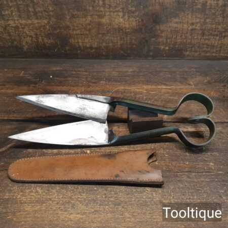 Vintage Sheffield Made sheep shears in purpose made leather sheath, sharpened ready to use and in good used condition.