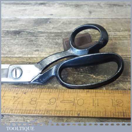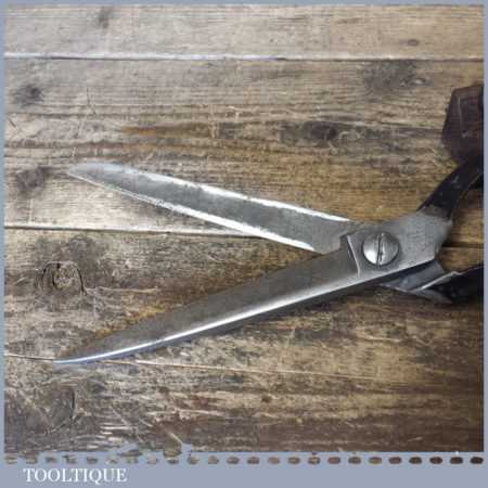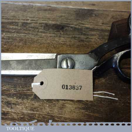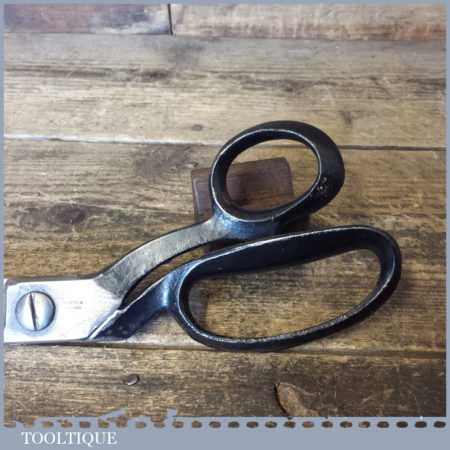 Vintage Sheffield made pair of 12 ½” tailor’s shears or scissors which can also be used for leather work. They have a centre tightening screw which is steel and another lock nut the other side so can be adjusted and taken apart if required which certainly helps the sharpening process. These have been serviced and sharpened and cut right down to the tip.