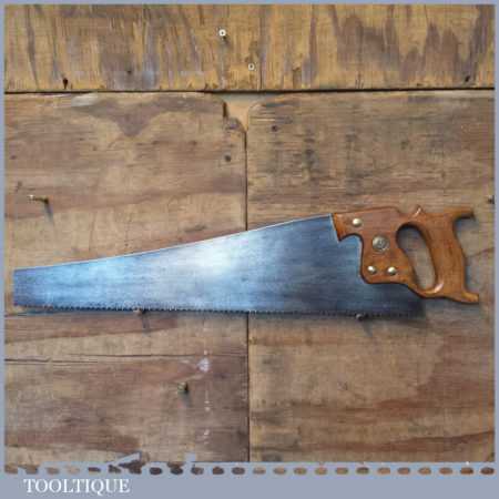 Vintage Sheffield warranted superior 21 ½” cross cut panel handsaw with 7 tpi, fully refurbished and sharpened ready for use.