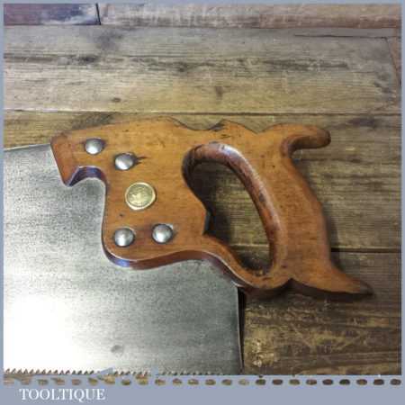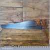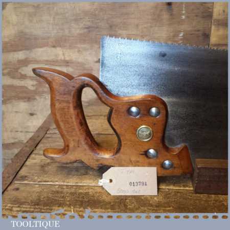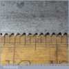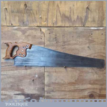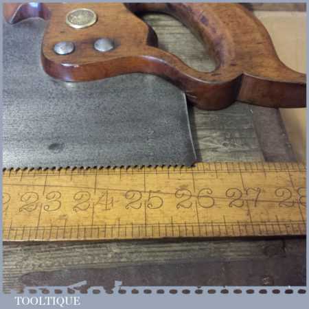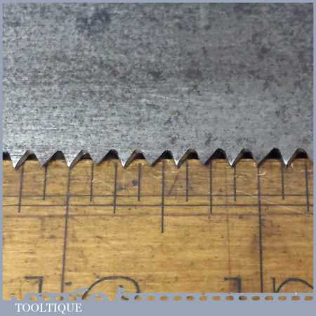 The saw has been thoroughly cleaned, jointed, resharpened and set by hand so that all the hard work of getting an old vintage saw right has been undertaken. We do this so that the next sharpening is easier and no more than a quick freshen up would be required. Those who are familiar with sharpening will know this is no small job and requires skill, effort and time to achieve good results.