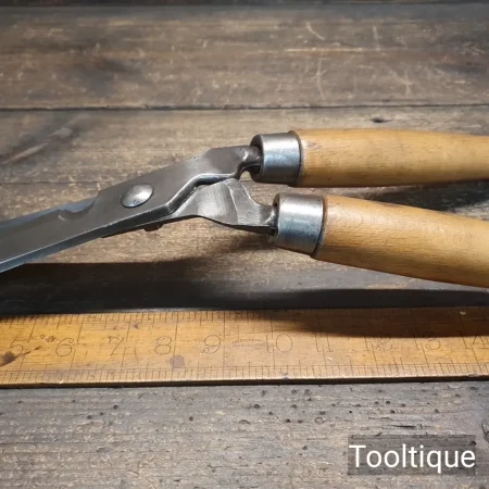 Vintage Shillito Nova Works Sheffield Gardeners Shears with Beechwood Handles, sharpened and refurbished ready for use and in good used condition. Note: These cut like a new pair, faces redressed to eradicate previous wear, handles are tight fitting.