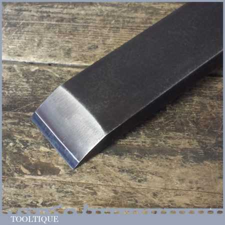 The chisel has been checked to ensure the tang is seated properly and the handle is solid and fit for use. All refurbished chisels are water cooled during the sharpening process to ensure the tempering is not affected. These old cast steel chisels are hand forged and far superior in quality because of the high carbon steel that was used which produces a keener edge, this was also generally used throughout the full length.
