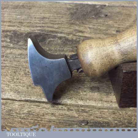 Vintage shoemaker’s leatherworking long beak glazing iron with beechwood handle in good used condition.