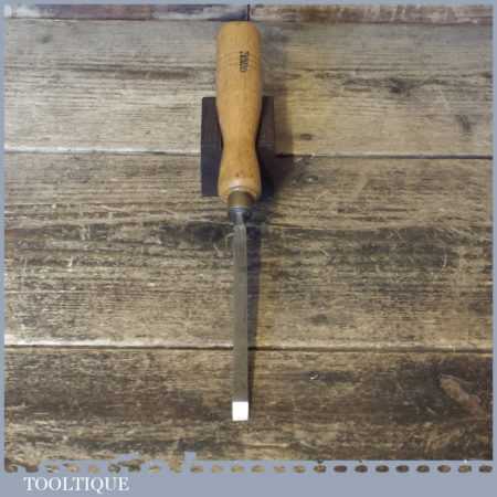The chisel has been checked to ensure the tang is seated properly and the handle is solid and fit for use. All refurbished chisels are water cooled during the sharpening process to ensure the tempering is not affected. These old cast steel chisels are hand forged and far superior in quality because of the high carbon steel that was used which produces a keener edge, this was also generally used throughout the full length.