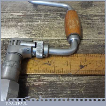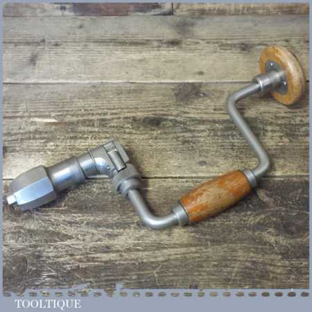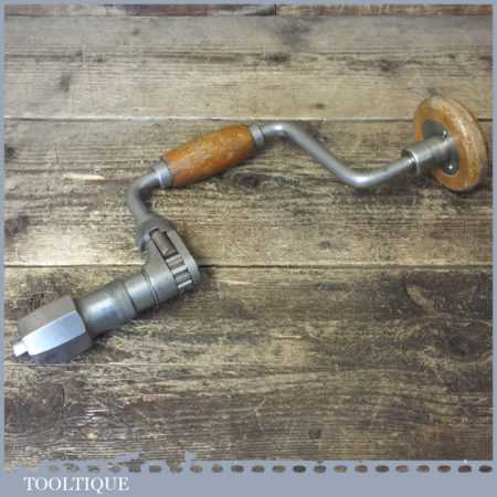 Vintage Skinner carpenter’s ratchet brace with beechwood handles and an 8” swing in good used condition, refurbished ready for use.