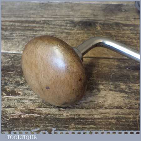 Vintage Ratchet brace by Skinner with an 8” swing and beech wood handles in good used condition. The tool has been cleaned and all the parts move freely.